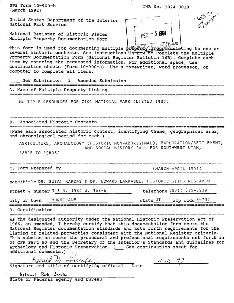 Zion National Park MRA