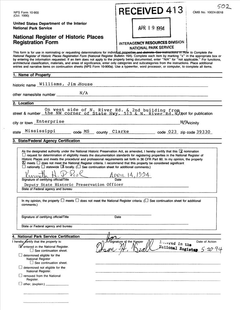 Enterprise ; N. River Rd. W side, near jct. with MS 513
