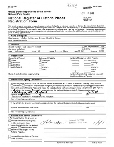 Cowling, Judge Jefferson Thomas, House