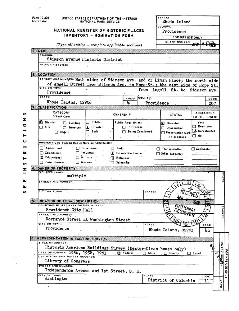 Providence ; Both sides of Stimson Ave. and Diman Pl. between Angell St. on S, Hope St. on W, and a stone wall on N.