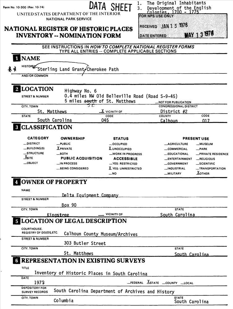 St. Matthews ; 5 mi. SE of St. Matthews on SC 6
