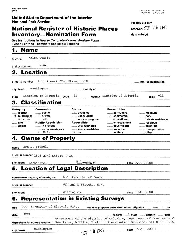 District of Columbia ; Washington ; 1511 (rear) Twenty-second St. NW