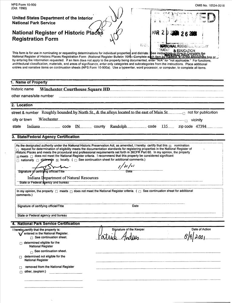 Winchester ; Roughly bounded by North St., and the alleys located to the E of Main St.