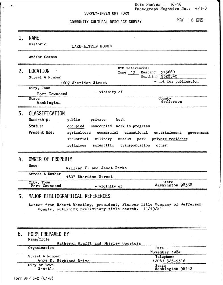 Port Townsend ; 1607 Sheridan St.