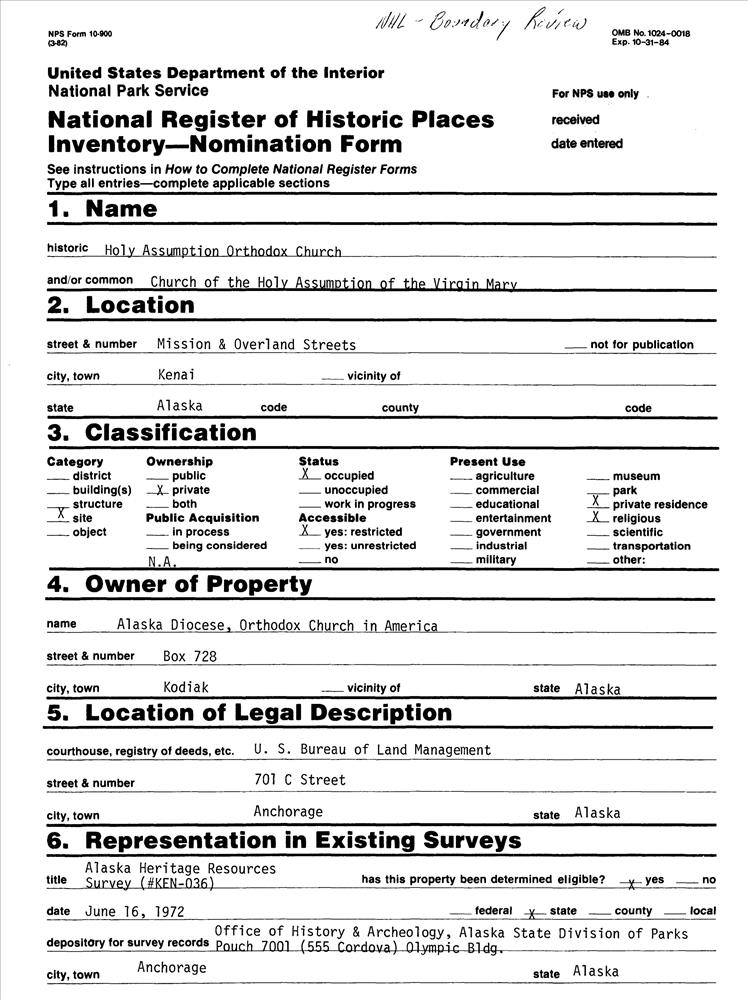 Kenai ; Mission and Overland Sts.