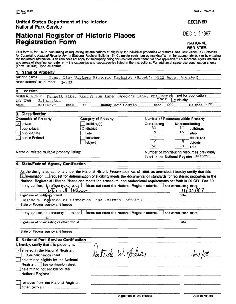 Wilmington ; Roughly bounded by Mill Rd., Henry Clay Rd., Breck's Lane and Michigan Rd.
