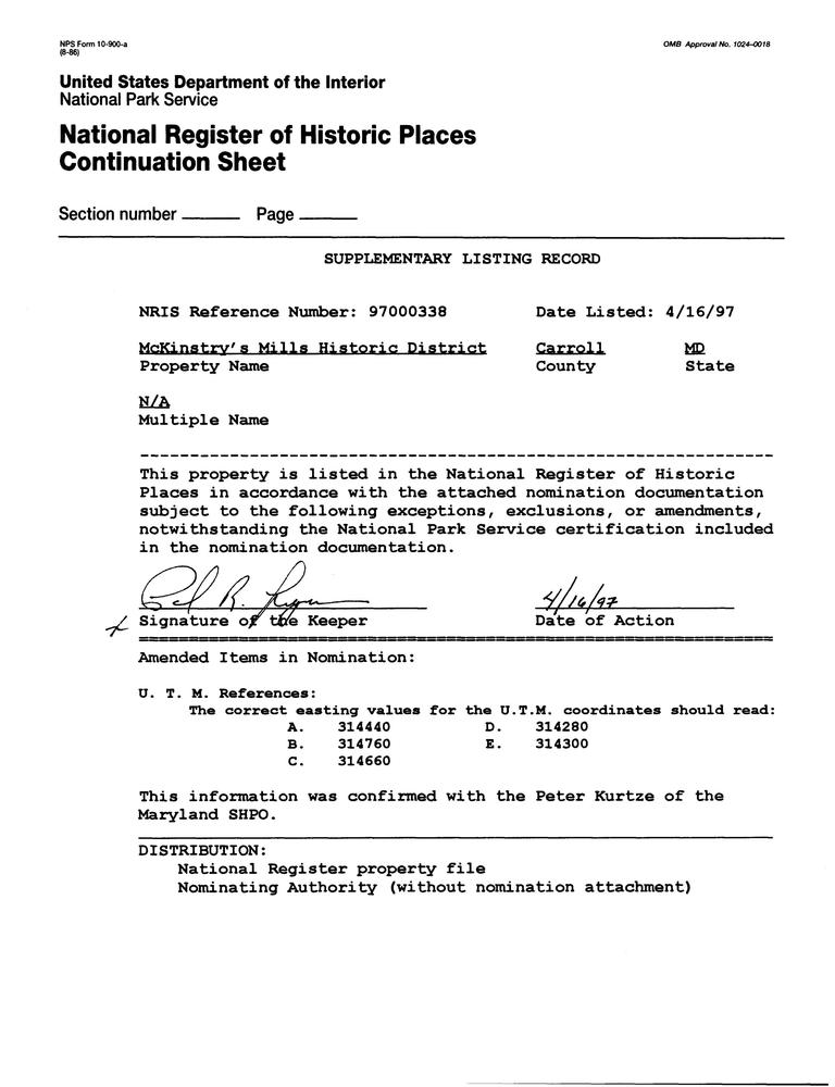 Union Bridge ; 1494, 1498, and 10904 McKinstry's Mill Rd., 4500 and 4504 Sam's Creek Rd.