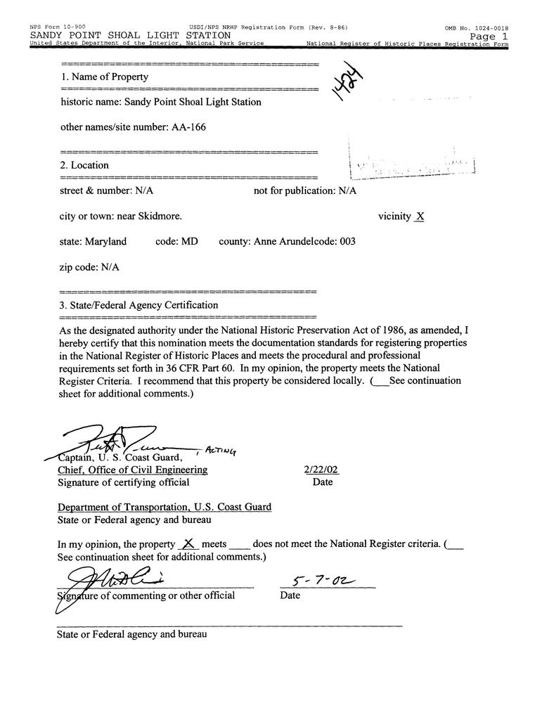 Skidmore ; Approx. 0.5 mi. off of Sandy Pt.