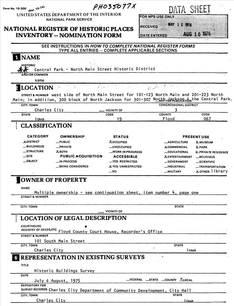 Charles City ; N. Main St. and N. Jackson St.