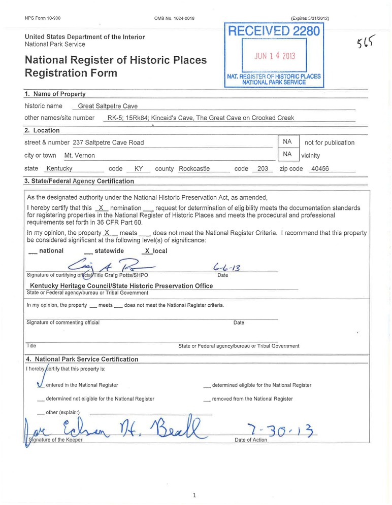 Mt. Vernon ; 237 Saltpetre Cave Rd.