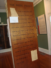 A wooden board with a message on it.