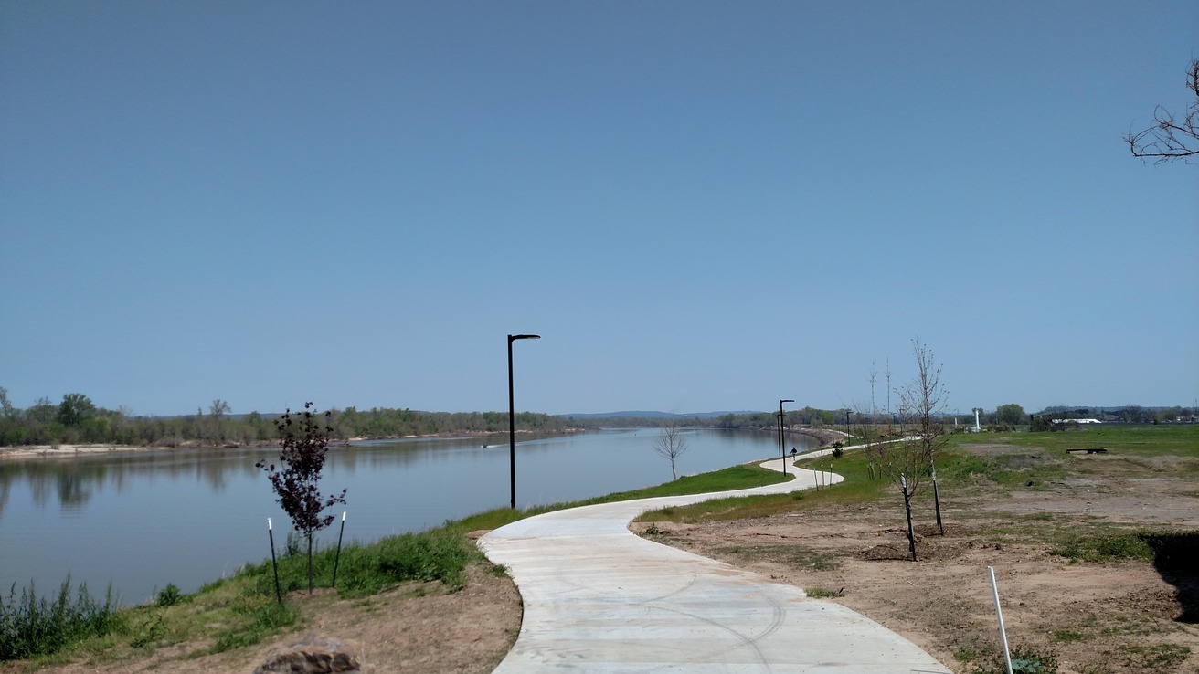 The River Trail runs along the Arkansas River at the Fort Smith National Historic Site in Fort Smith, Arkansas; https://www.nps.gov/places/fort-smith-national-historic-site-trail-of-tears.htm