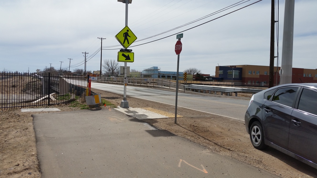 A crosswalk at 2nd street and Valle de Oro Trail in Albuquerque, NM; https://www.fws.gov/refuge/valle_de_oro/