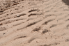 A sand dune with footprints in the sand.