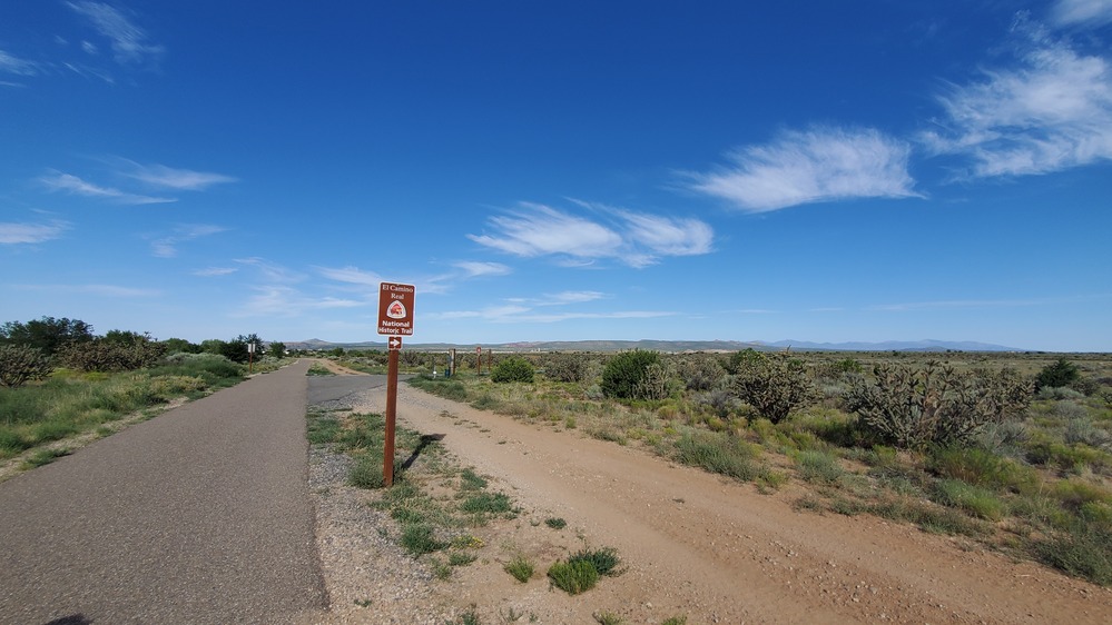 An El Camino Real de los Tejas National Historic Trail NTIR Sign on an interpretive trail in Santa Fe, NM; https://www.blm.gov/visit/el-camino-real-nht