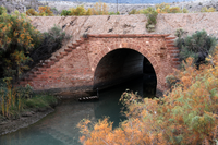 Stone Arch Culvert over Workman Wash on upgrade 66 (former RR) near Park Moabi (Exit 153).