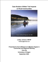 A comparative analysis of rural communities with calm water trails. Case studies illustrate impacts of calm water trails and trends are drawn from community economic development associated with water trails.