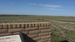A brick wall with a wayside in front of it displaying, overlooking a wide, open landscape.