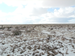 A snow-covered field with grass and bushes.