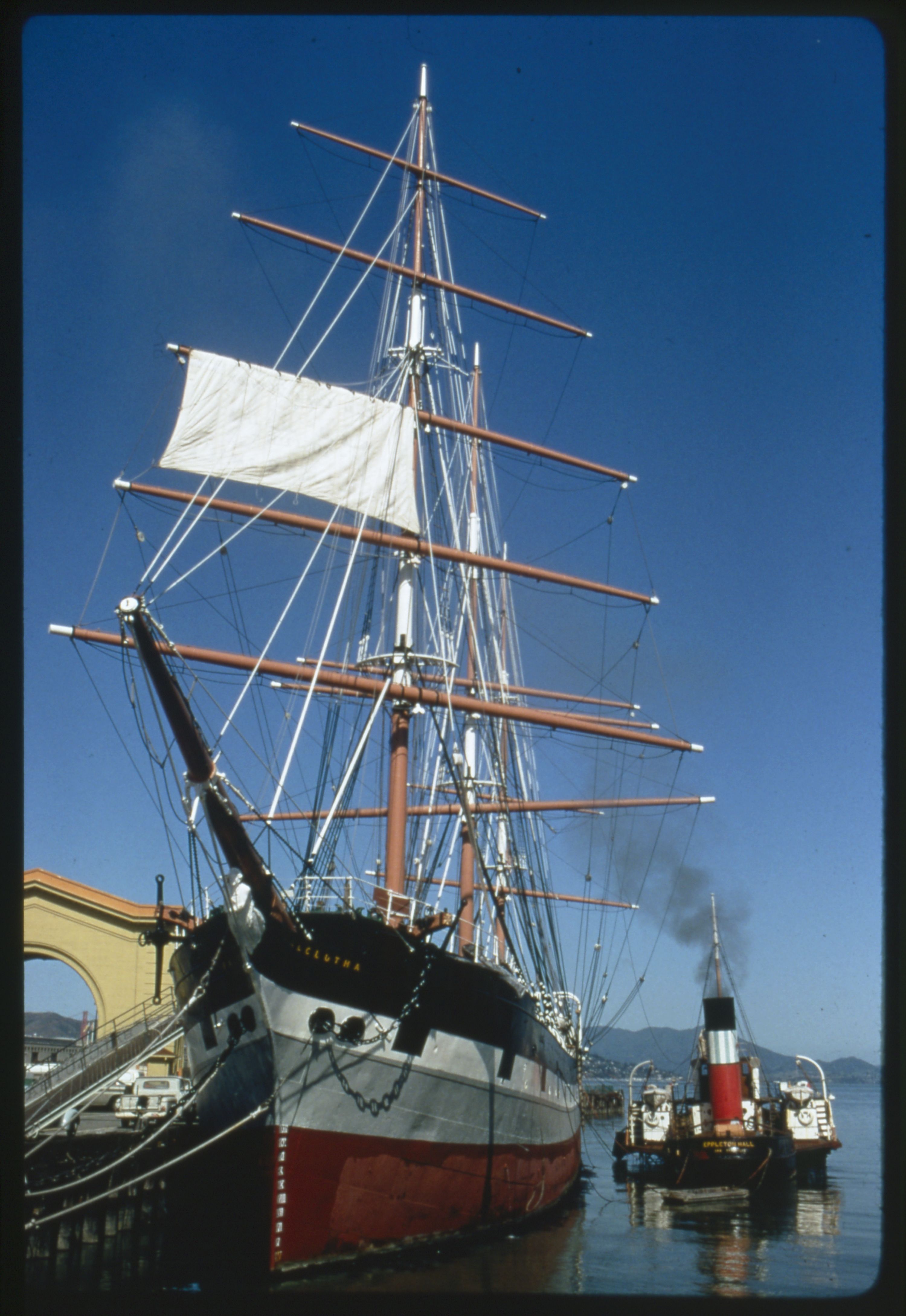 The Eppleton Hall is a steam sidewheeler with side-lever engines, and is the only remaining intact example of a Tyne paddle tug. These photographs document the Eppleton Hall arriving at San Francisco's Fisherman's Wharf on March 24, 1970. After extensive restorations in Newcastle, England, the tugboat was steamed to San Francisco by the owner, Captain Scott Newhall. Crew on this voyage via the Panama Canal included San Francisco Maritime Museum founder Karl Kortum and his son, John; restoration leader and rigging expert Bill Bartz, and his children Heide and Billy; as well as engineers and a purser. Despite technical difficulties, inclement weather conditions, and illness of the crew, she steamed through the Golden Gate on March 24, 1970. The vessel was donated to the National Park Service in 1979. She is now berthed at Hyde Street Pier. The slides were used in a presentation about the Eppleton Hall at the San Francisco Maritime National Historical Park on October 24, 1998. This portion of the slide show depicts the vessel along the San Francisco Waterfront, including Hyde Street Pier, in consequent years after arriving in San Francisco.