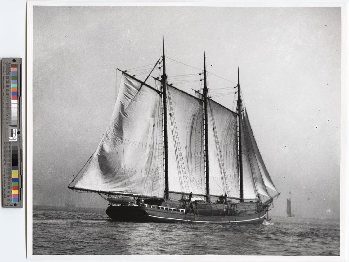 Sadie (schooner, 3m) under way on San Francisco Bay, Calif., undated