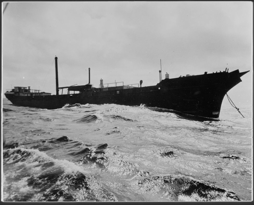 Falls of Clyde (built 1878; barge) upon arrival at Honolulu, Hawaii, possibly 1963 Nov