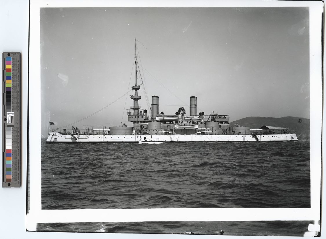 Port broadside view. Written on label stuck on lower edge of glass negative, "C7 Oregon 290".