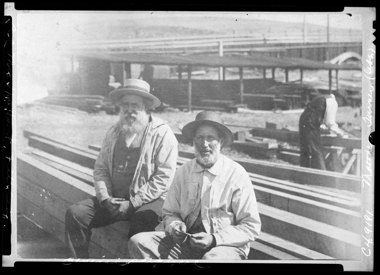 Two men posing in Matthew Turner's shipyard, Benicia, CA, undated