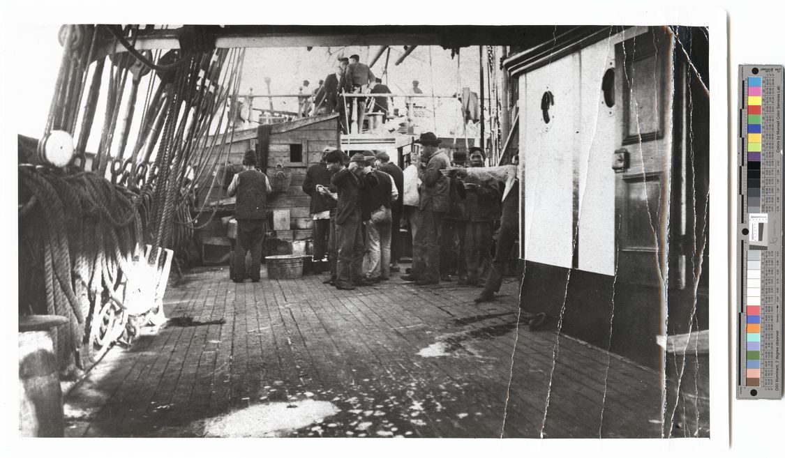Star of Alaska (built 1886; ship, 3m) view on board of Chinese cannery workers, undated