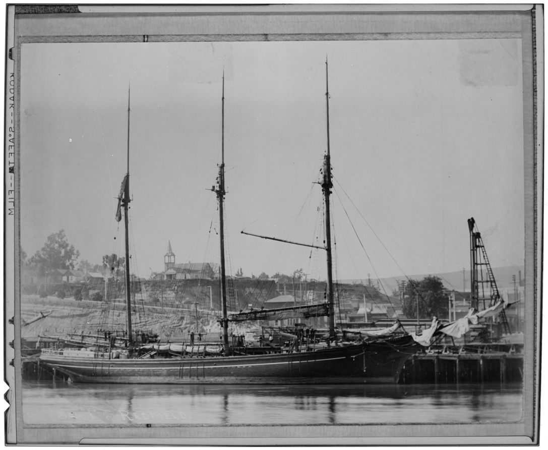 F.S. Redfield (built 1887; schooner, 3m) at San Pedro, CA, undated