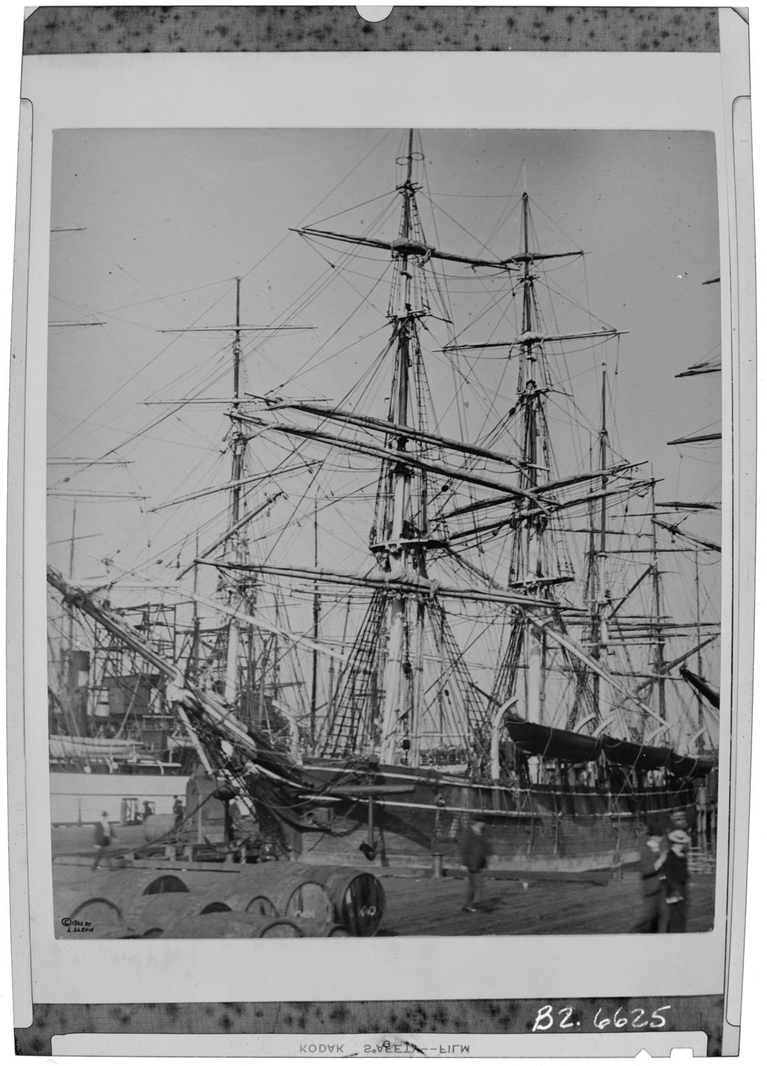 Charles W. Morgan (built 1841; ship, 3m: whaler) pierside, 1900 Nov 05