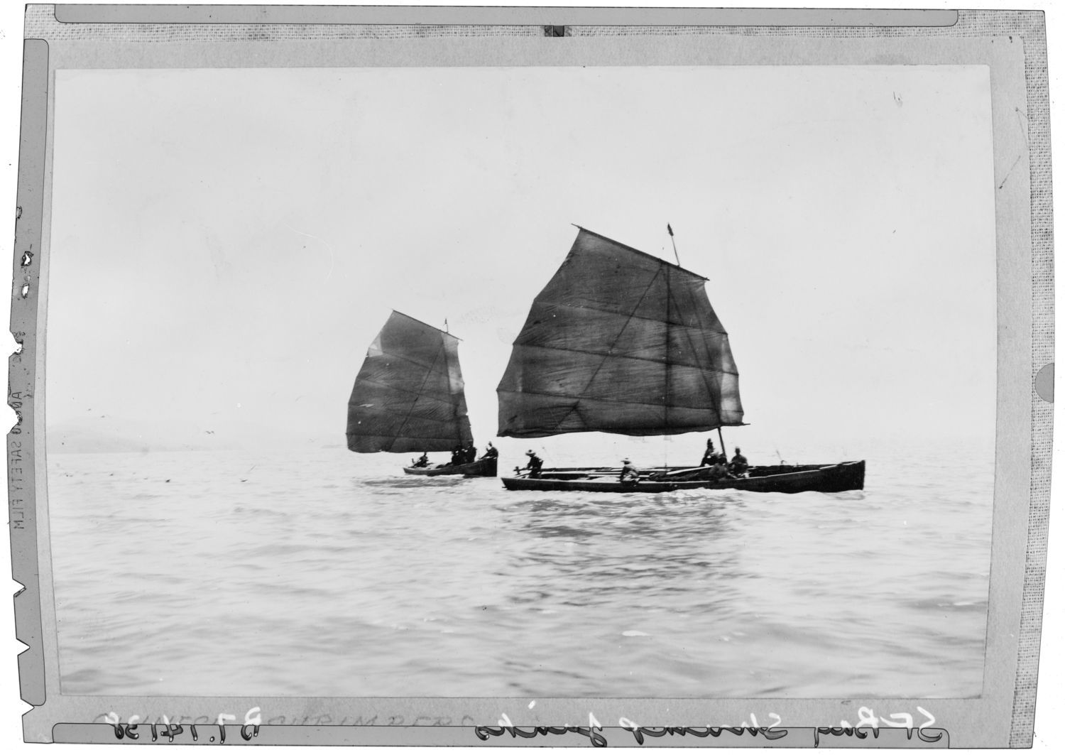 Two shrimp junks under way on San Francisco Bay, CA, undated