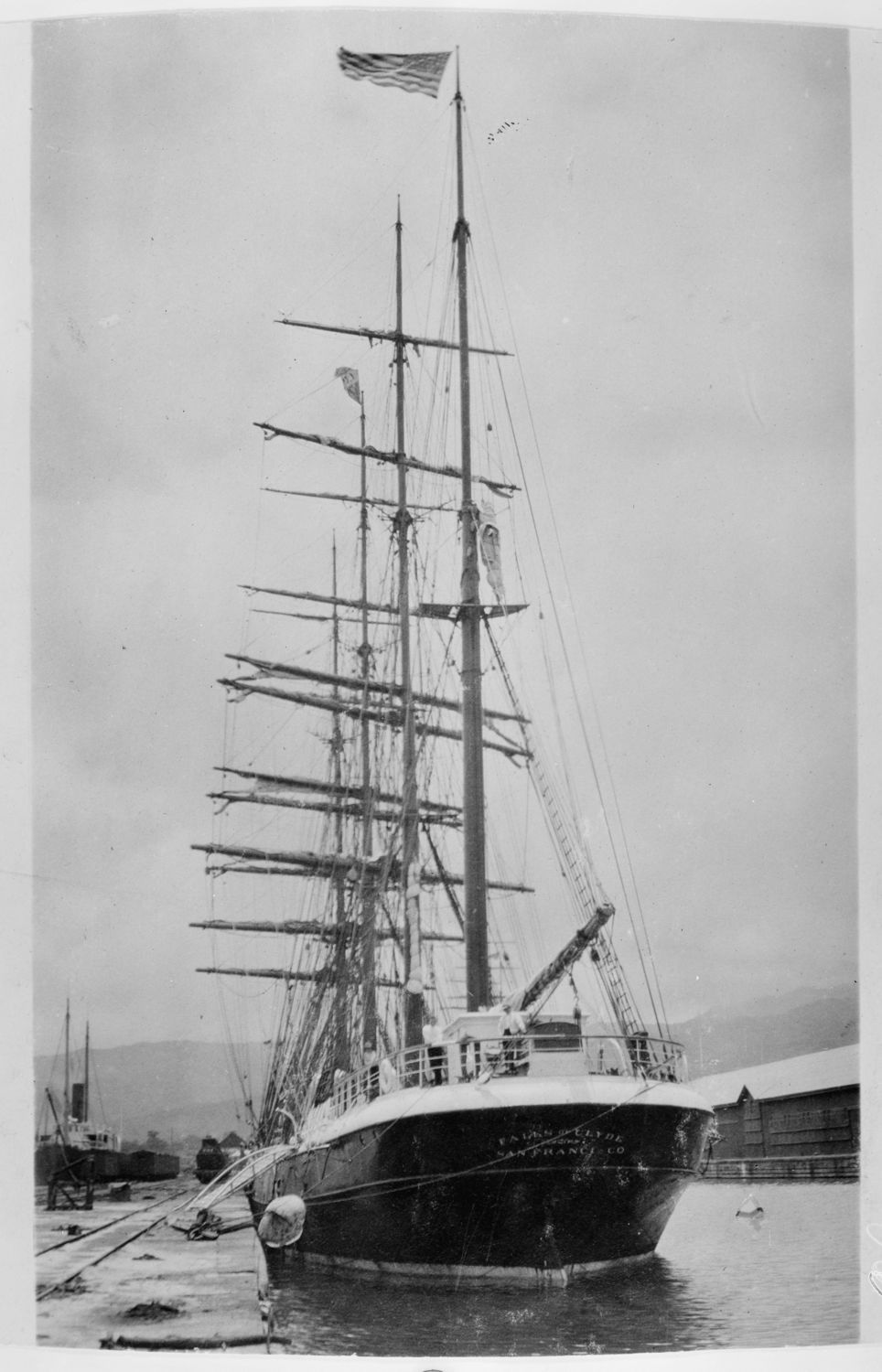 Falls of Clyde (built 1878; bark, 4m) seen at Honolulu, Hawaii, 1917