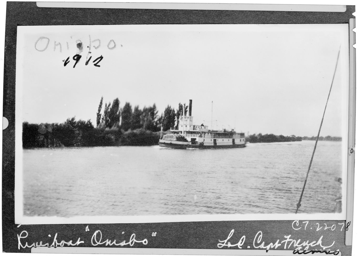 Onisbo (riverboat), under way at an unidentified location, 1912