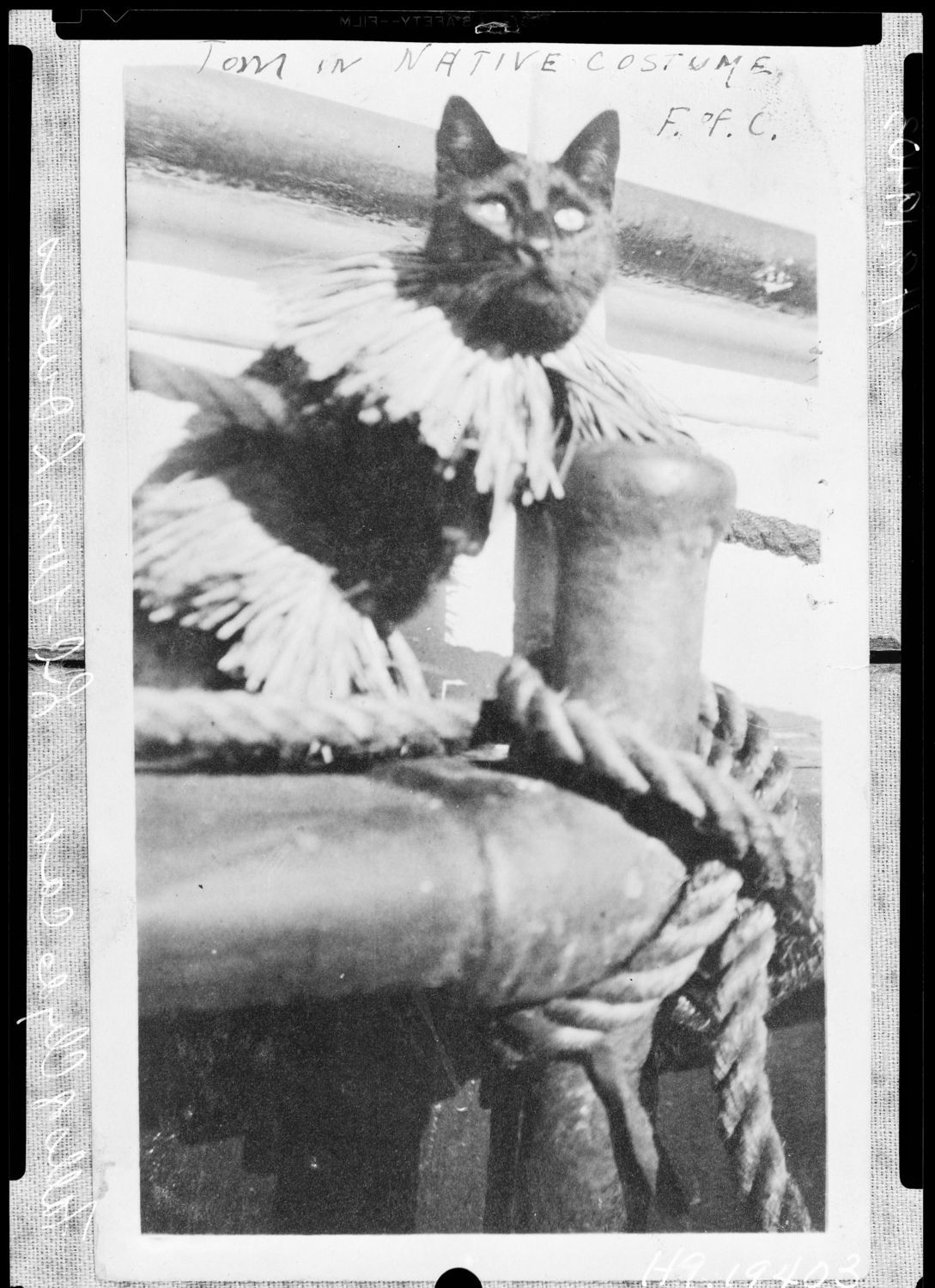 Tom, the ship's cat, in "native costume."
