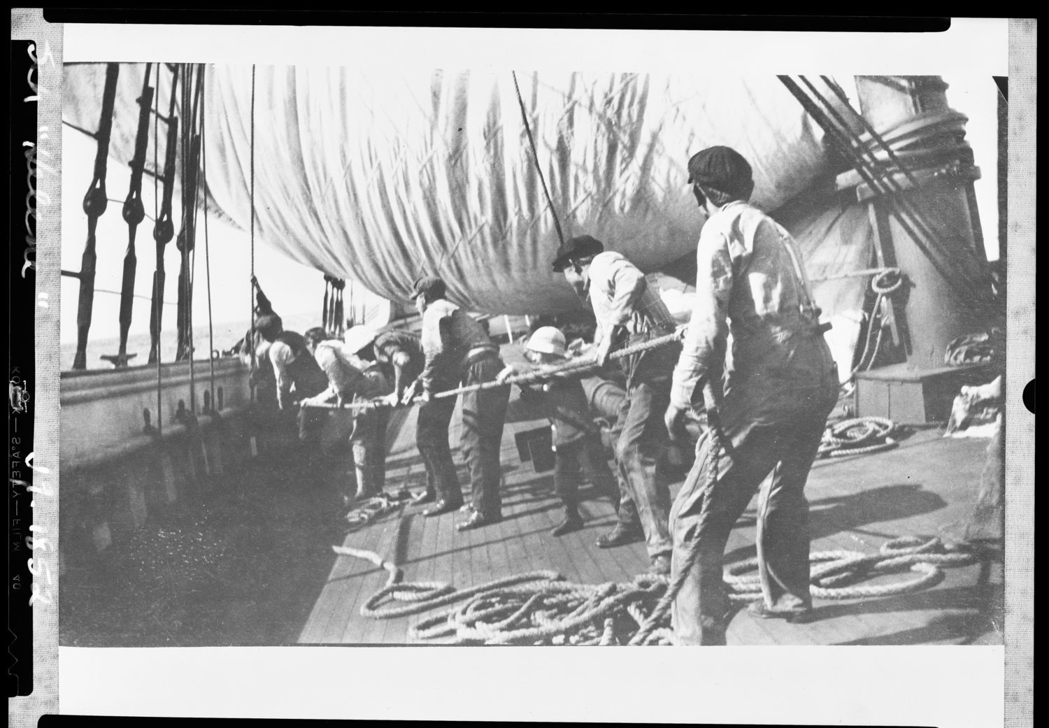 Helene (built 1900; schooner, 4m) crew activity on deck, undated