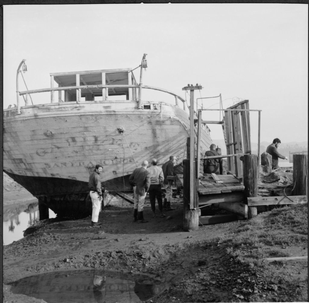 Galilee (built 1891; schooner, 3m), stern at Sausalito, CA, 1968 Jan