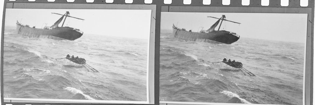 Two negatives on one film strip. See info file. While on Her Way from Puget Sound to Valparaiso with a Cargo of Lumber the Schooner Forest Home Caught Fire and Put into Callao in Distress.