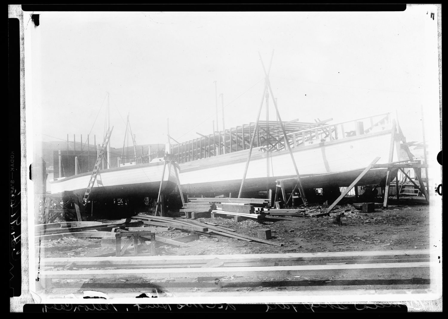 View of two vessels under construction at Matthew Turner's shipyard, Benicia, CA, undated
