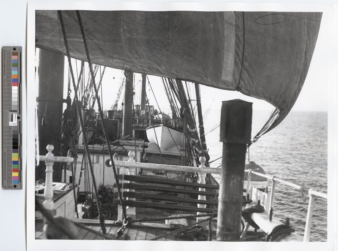 Pacific Queen (built 1886; ship, 3m) view along the deck, undated