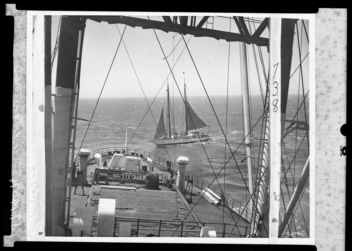 Pilot Boat #15. View as seen from the deck of an unidentified vessel, possibly off San Francisco, California.