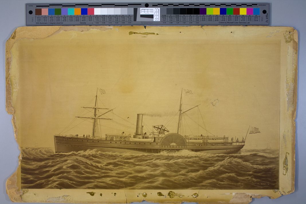Joseph Lee marine painting of Orizaba (paddle steamer) under way, 1876