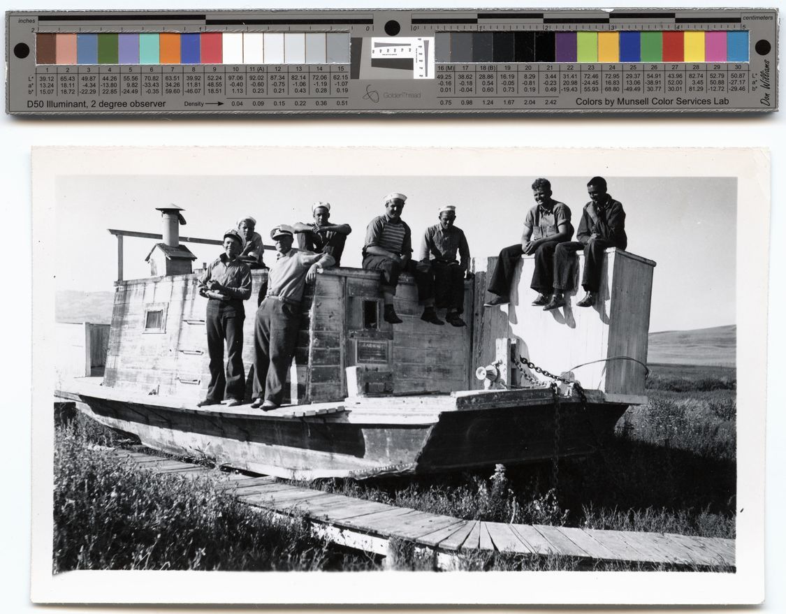 Unidentified scow sloop near Lakeville, Pet River, circa 1937 Jul 24-25