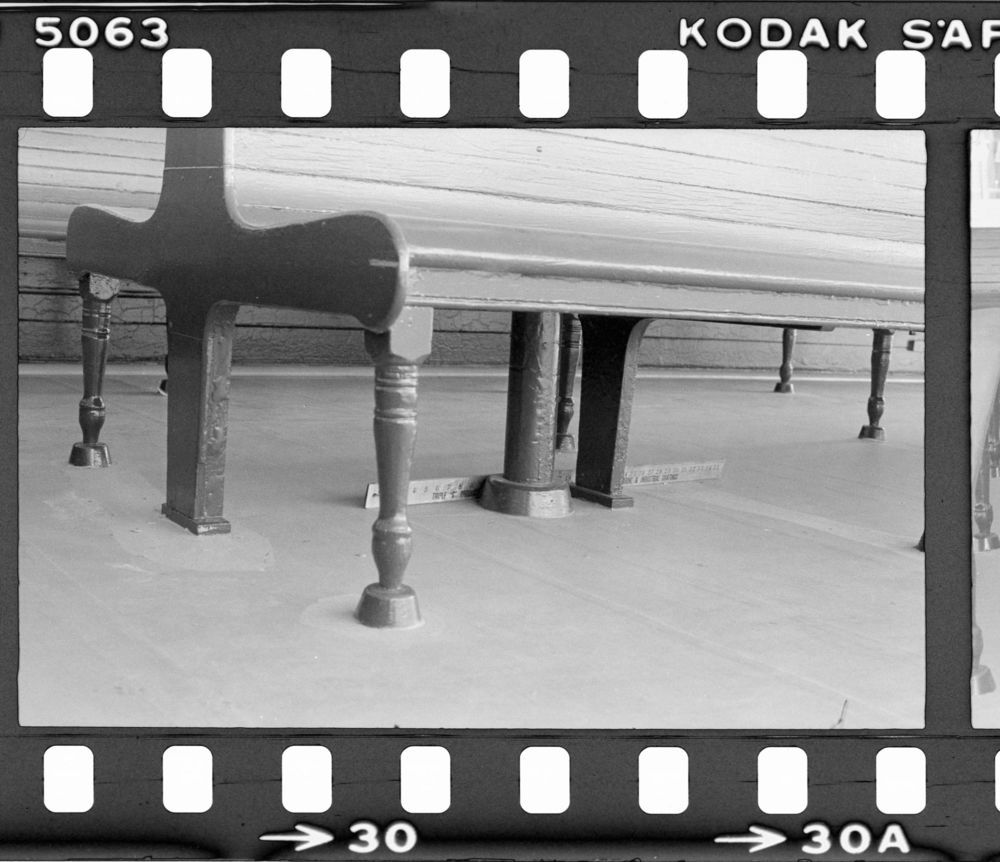 Various views of numerous parts of Eureka (built 1890; ferry) used for a survey. Includes close-ups of posts, benches, and on-deck details.