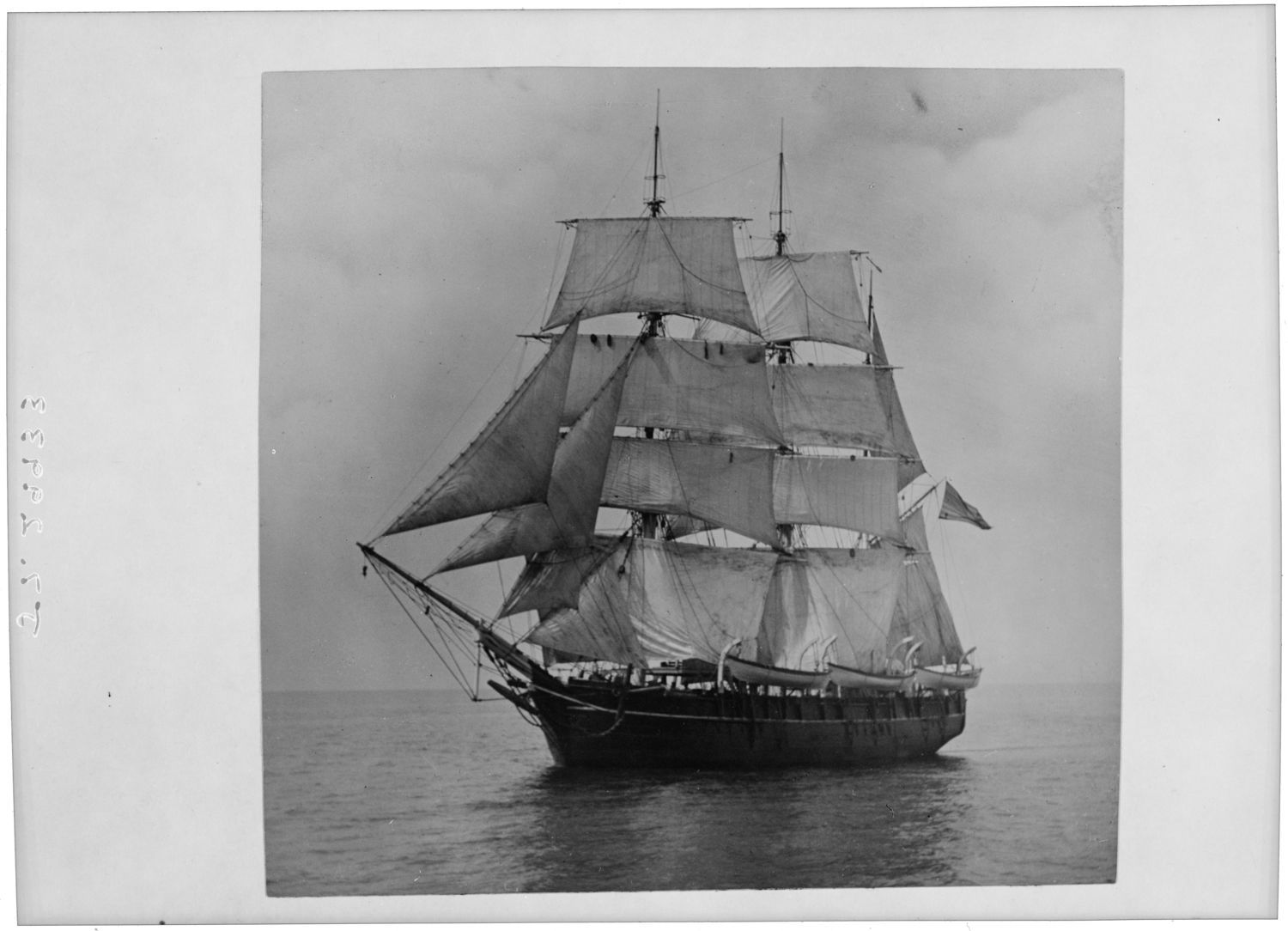 Charles W. Morgan (built 1841; ship, 3m: whaler) in open waters, 1920
