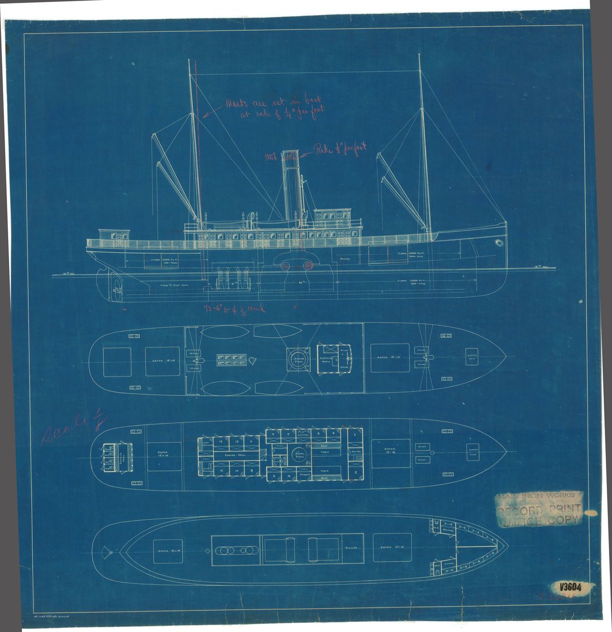 Plan is marked with the Main Street Iron Works number V3604. Conservation treatment 2013: tears repair with japanese paper mends, Palma You.