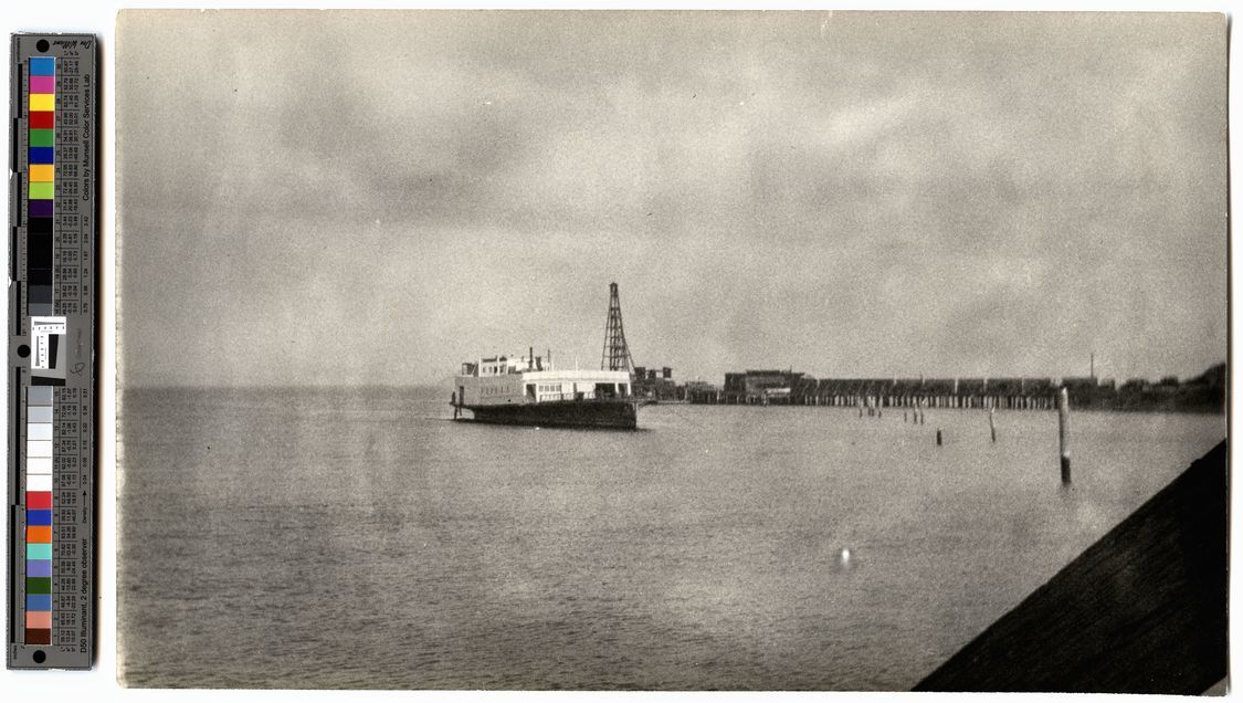 James M. Donahue (built 1875; paddle ferry) hulk in use as a shrimp reduction works at San Quentin, CA, 1925