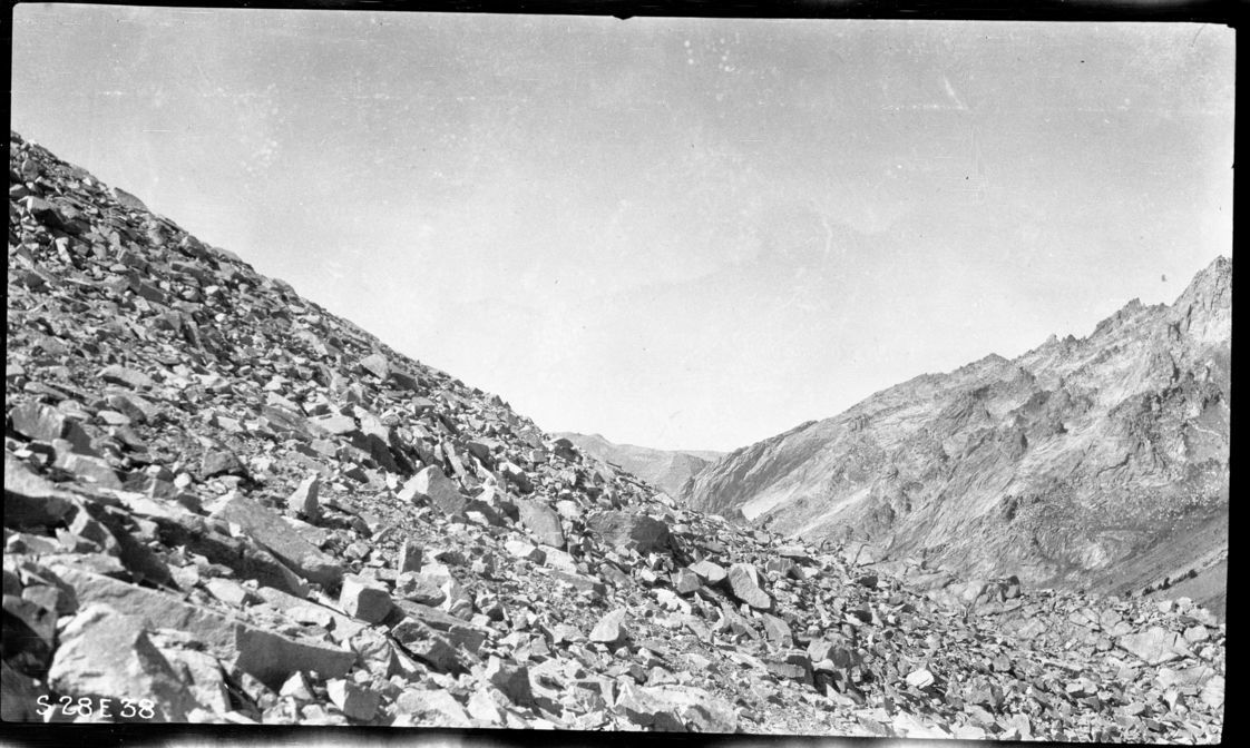 Guy Edwards, Lion Lake Area, SNP, High Sierra Trail Investigation, loose rock formation west of Lion Lake. Talus slopes. 280000.