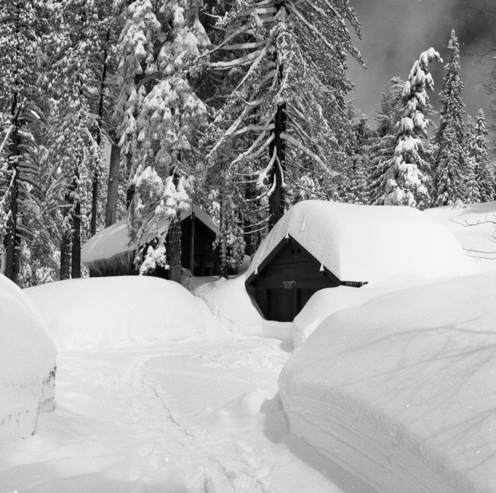 Winter Scenes, Grant Grove Village in snow, record heavy snows, Buildings and Utilities.