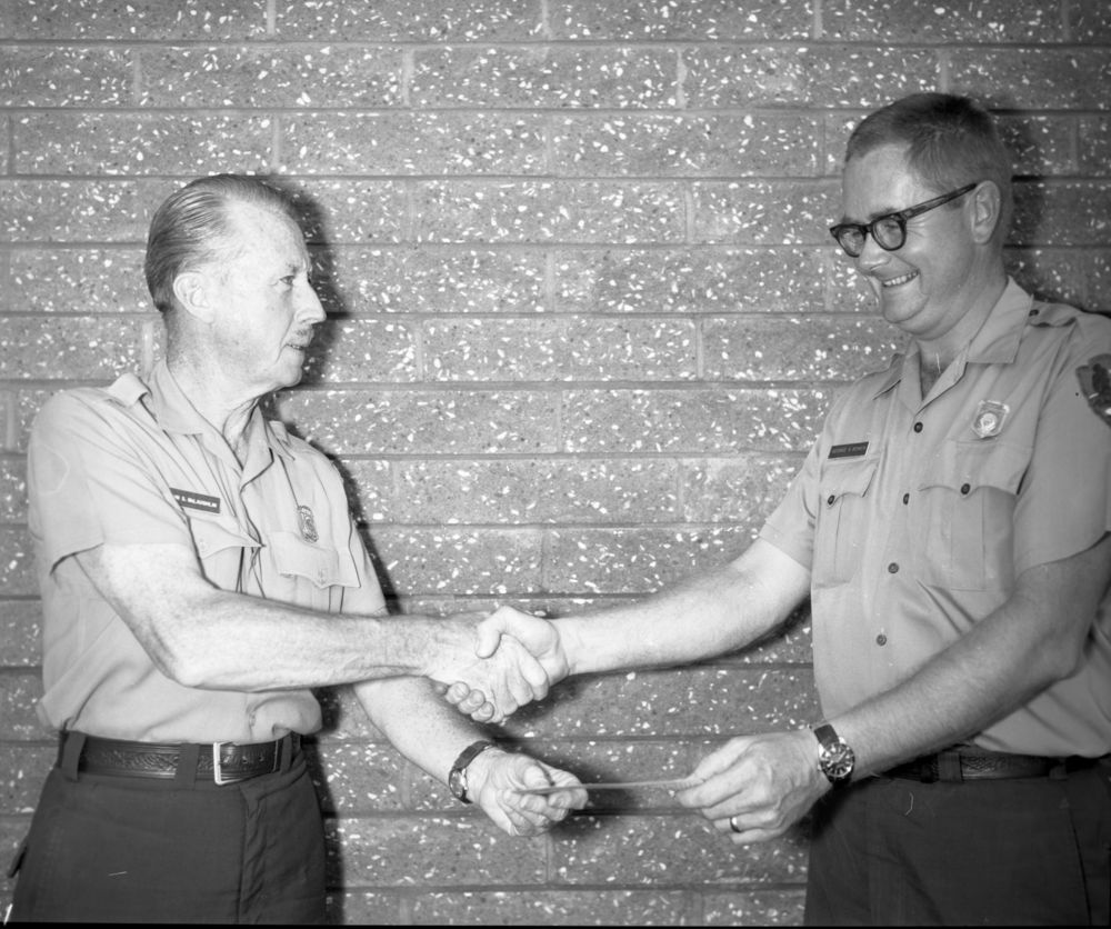 NPS Individuals, George H. Bowen, suggestion award by Supt. John McLaughlin, Park Superintendents.